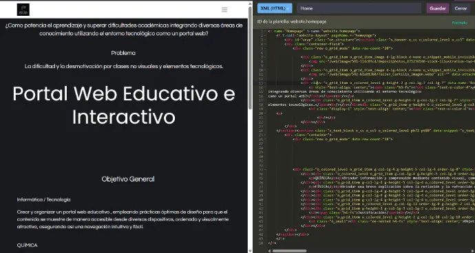 La definición del proceso comenzó por realizar un estudio, en el que se hacía constar las dificultades que se encuentran los alumnos al acabar las clases, poco visuales o con poco apoyo de las tecnologías. A partir de ahí, surge la idea de crear un portafolio web educativo, interactivo que haga del aprendizaje una experiencia más amena y más accesible. La planificación de las ejecuciones de las acciones permaneció como trabajo en grupo, el trabajo de diferentes áreas del conocimiento -informática, química, física, religión, cálculo, inglés-, recursos digitales, idear, aplicar la tecnología y las TIC.